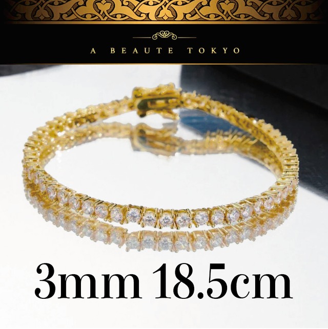 改良◆3mm 18.5cm SONA ダイヤモンド ブレスレット ゴールド◆保証書 ジュエリーポーチ メンズ レディース
