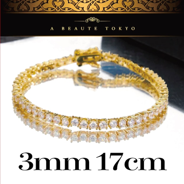 改良◆3mm 17cm SONA ダイヤモンド ブレスレット ゴールド◆保証書 ジュエリーポーチ メンズ レディース