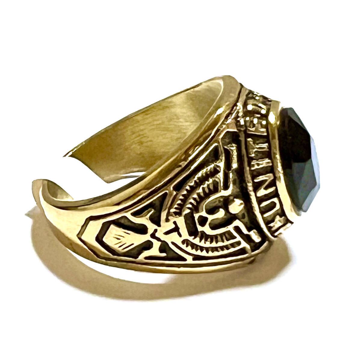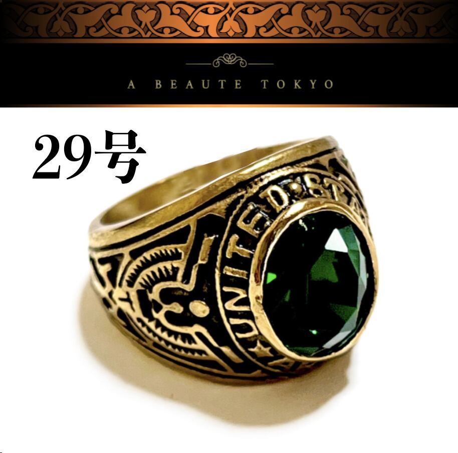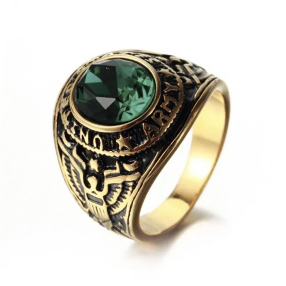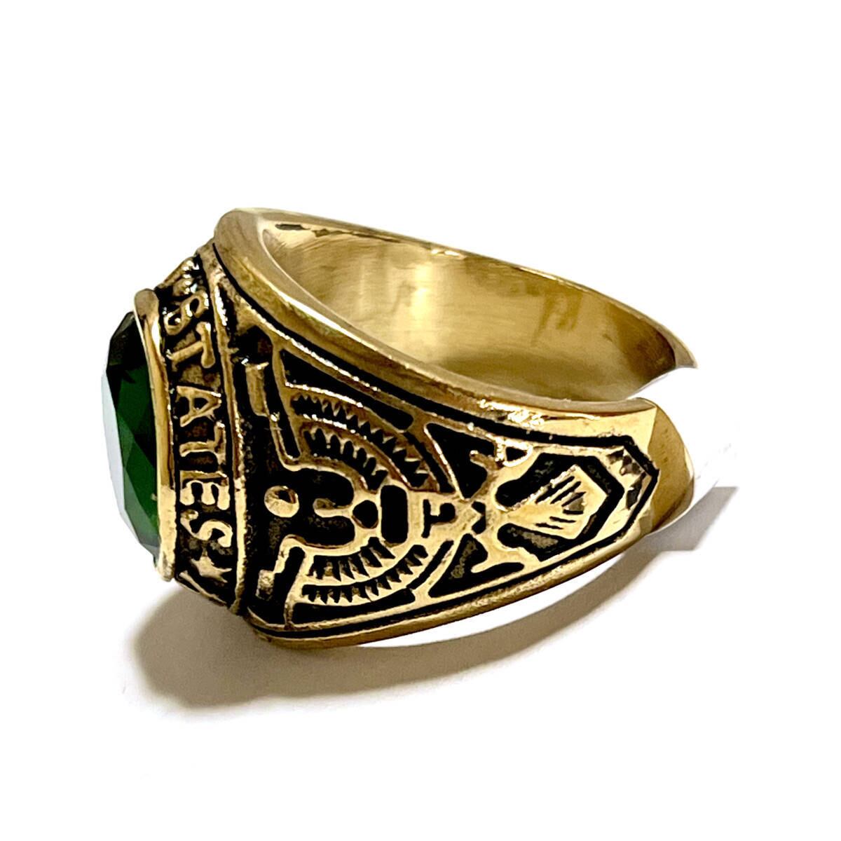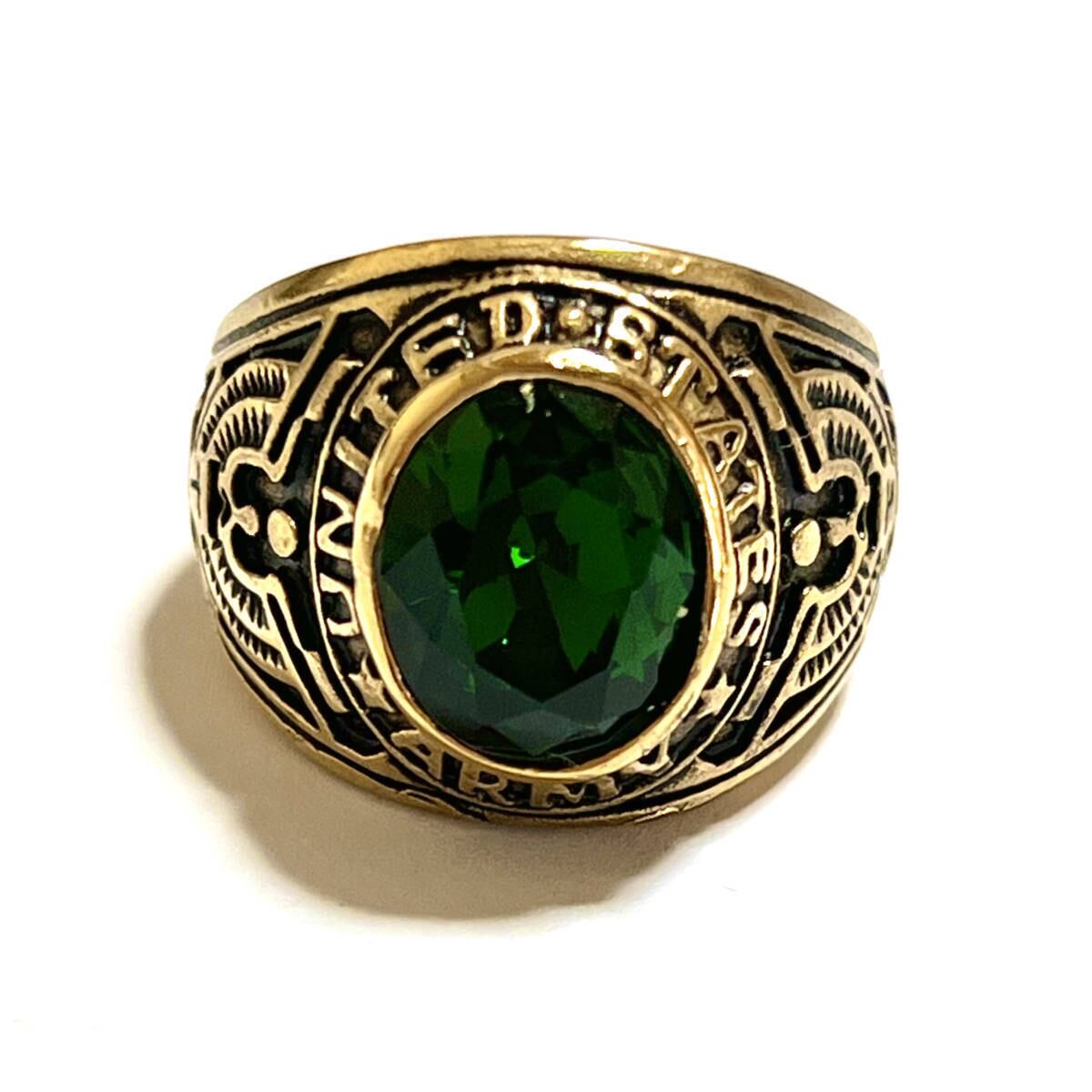 高品質◆29号 スワロフスキー 米陸軍 ミリタリーリング ゴールド◆ARMY カレッジリング 指輪 ジュエリーポーチ 保証書 メンズ エメラルド