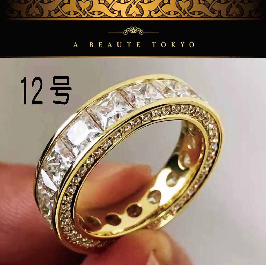 新品◆輝き保証 12号 スワロフスキー サークルスクエア リング ゴールド◆保証書 ジュエリーポーチ メンズ レディース アレルギー対応 指輪