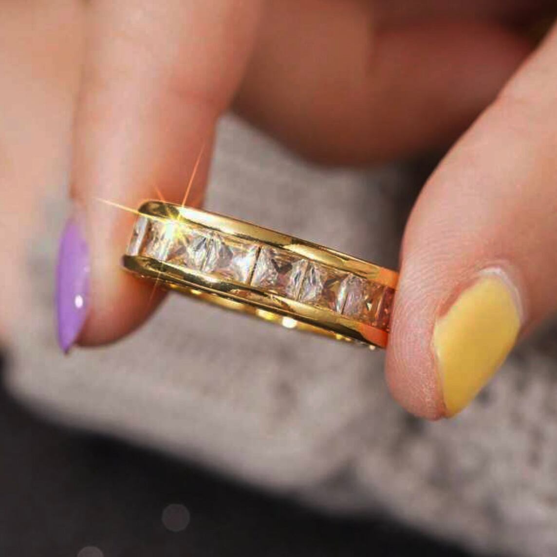 大粒スワロフスキーを贅沢に連ねた、重厚感と気品を併せ持つリング。ゴールドトーンの艶やかな輝きが指先に確かな存在感を与えます。オフィスでは控えめなラグジュアリーとして、普段使いには洗練されたアクセントに。パーティーや記念日、華やかな席では主役級の輝きを放ちます。自分へのご褒美や特別な贈り物にもふさわしい、ジェンダーレスな美しさを備えた男女共用モデルです。
