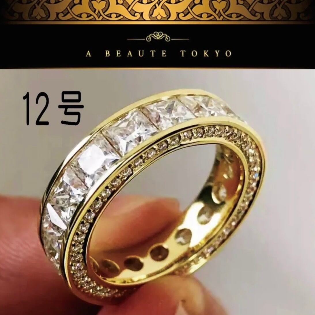 新品◆輝き保証 12号 スワロフスキー サークルスクエア リング ゴールド◆保証書 ジュエリーポーチ メンズ レディース アレルギー対応 指輪
