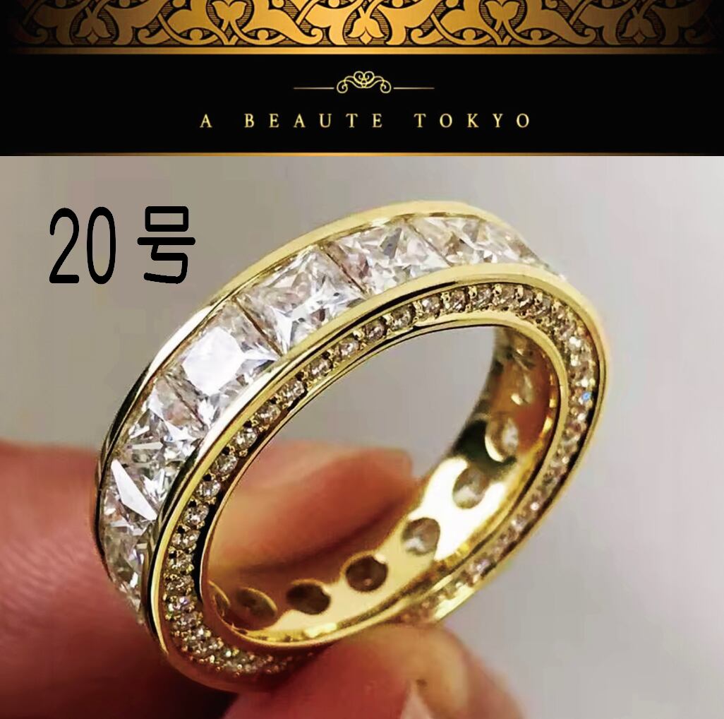 新品◆輝き保証 20号 スワロフスキー サークルスクエア リング ゴールド◆保証書 ジュエリーポーチ メンズ レディース アレルギー対応 指輪