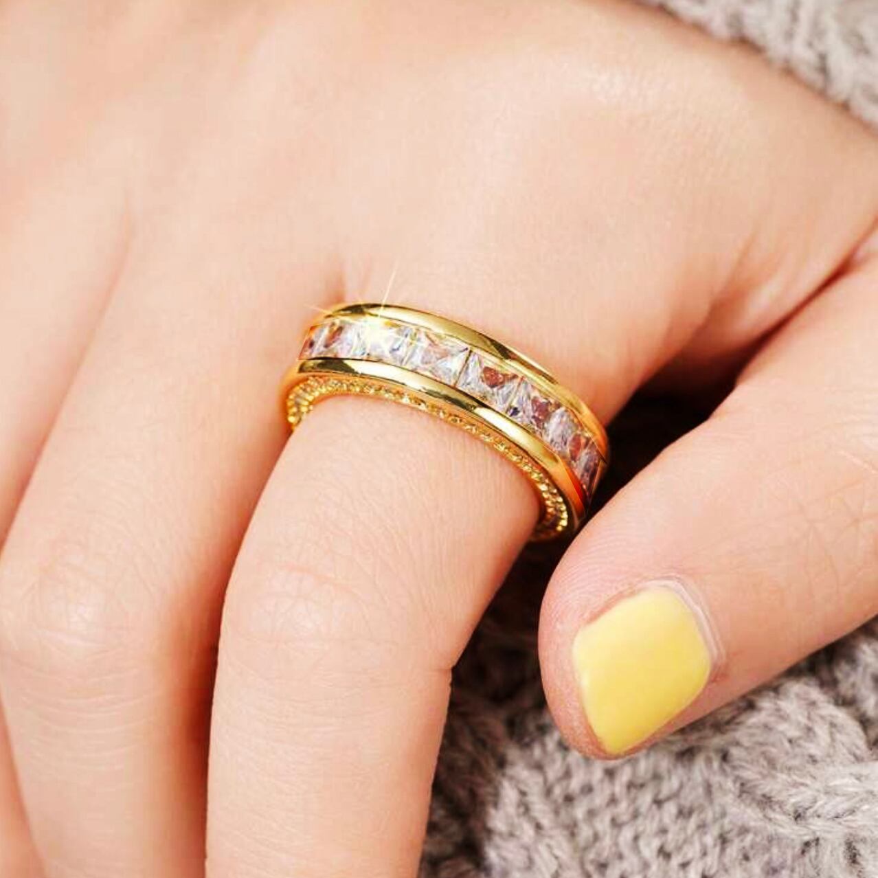 大粒スワロフスキーを贅沢に連ねた、重厚感と気品を併せ持つリング。ゴールドトーンの艶やかな輝きが指先に確かな存在感を与えます。オフィスでは控えめなラグジュアリーとして、普段使いには洗練されたアクセントに。パーティーや記念日、華やかな席では主役級の輝きを放ちます。自分へのご褒美や特別な贈り物にもふさわしい、ジェンダーレスな美しさを備えた男女共用モデルです。
