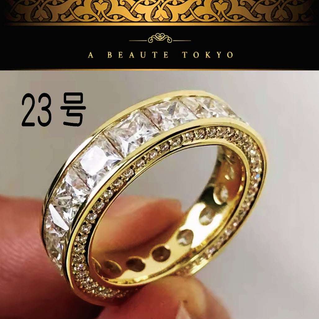 新品◆輝き保証 23号 スワロフスキー サークルスクエア リング ゴールド◆保証書 ジュエリーポーチ メンズ レディース アレルギー対応 指輪