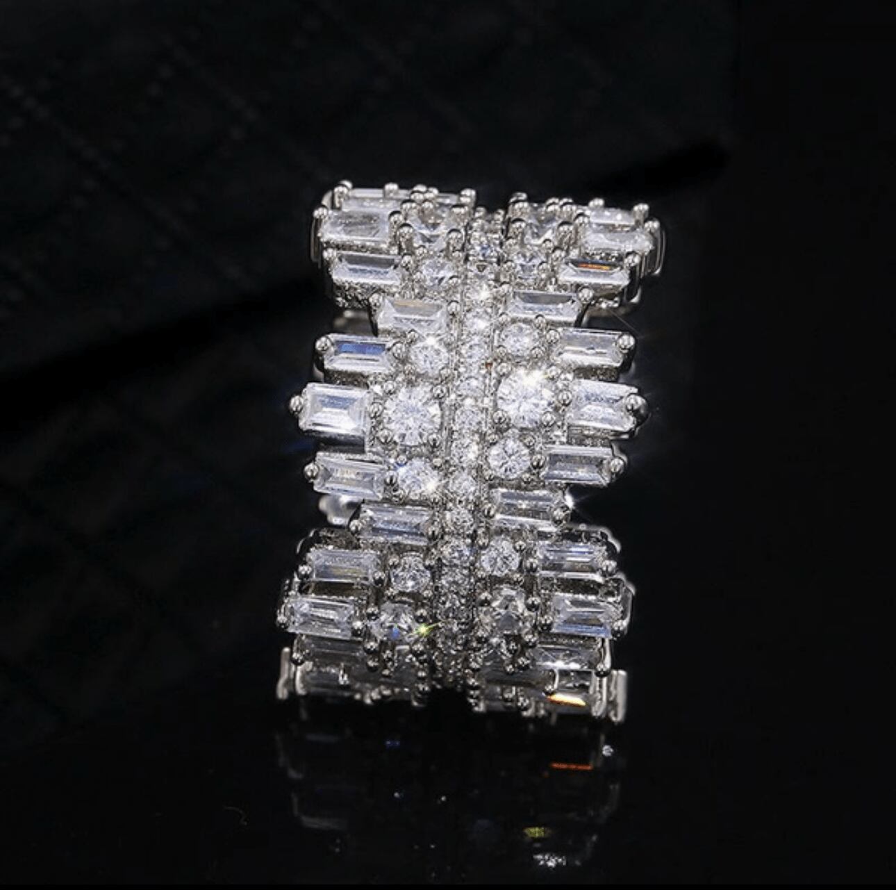 凛としたシルバーが描き出す造形美際立つアートピースのようなリングです。美麗に配されたスワロフスキーが独創的なシルエットに瑞々しい光を宿し、指先へ洗練された都会的な表情と圧倒的な存在感を授けます。日常の装いを格上げするモードなアクセントとしてはもちろん、オフィスでも感性を大切にしたい日の知的なスパイスに。唯一無二の愛着の一品です。