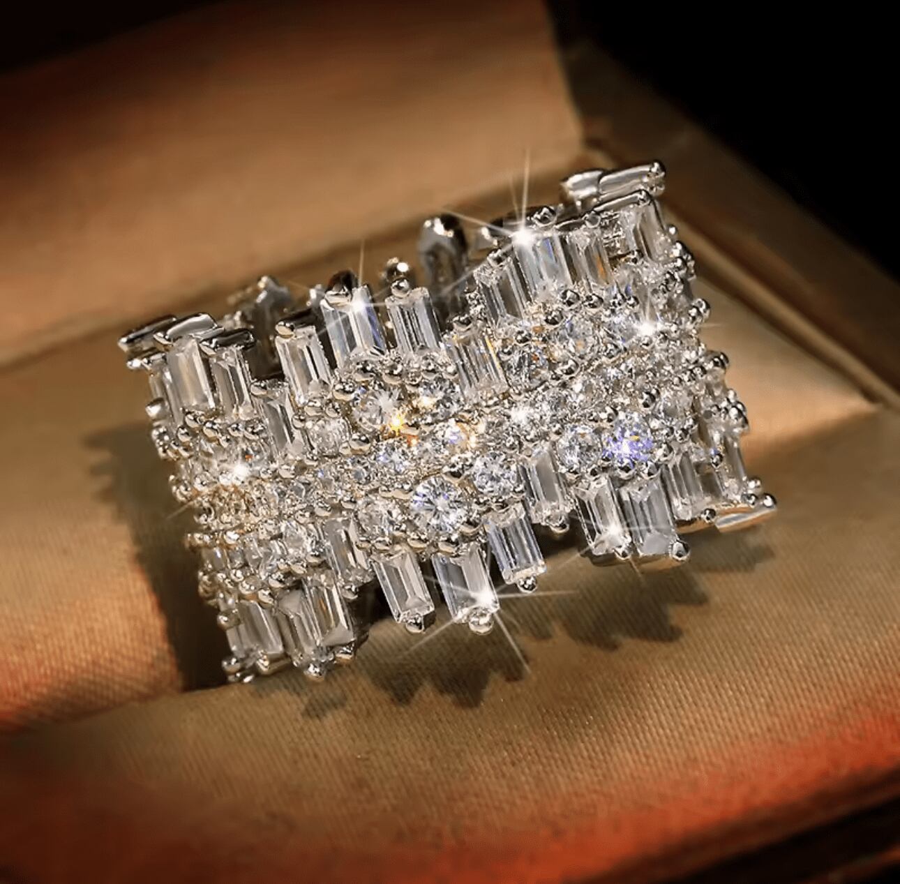 凛としたシルバーが描き出す造形美際立つアートピースのようなリングです。美麗に配されたスワロフスキーが独創的なシルエットに瑞々しい光を宿し、指先へ洗練された都会的な表情と圧倒的な存在感を授けます。日常の装いを格上げするモードなアクセントとしてはもちろん、オフィスでも感性を大切にしたい日の知的なスパイスに。唯一無二の愛着の一品です。