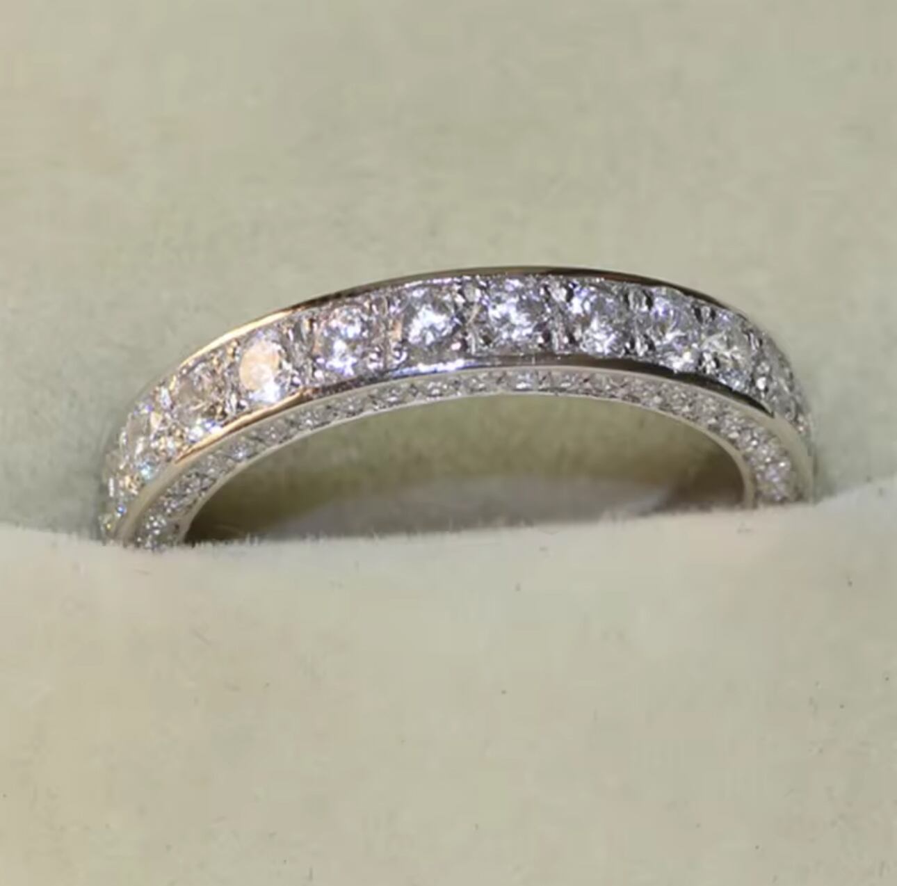 緻密に並べたスワロフスキーが途切れなく輝く、洗練のエタニティリング。シルバートーンの上品な光沢が指先を美しく引き立てます。オフィスでは知的で清楚な印象に、普段使いではさりげない高級感を演出。パーティーや記念日の装いには重ね着けで華やかな主役に。ジェンダーレスな美しさを備えた男女共用モデルです。