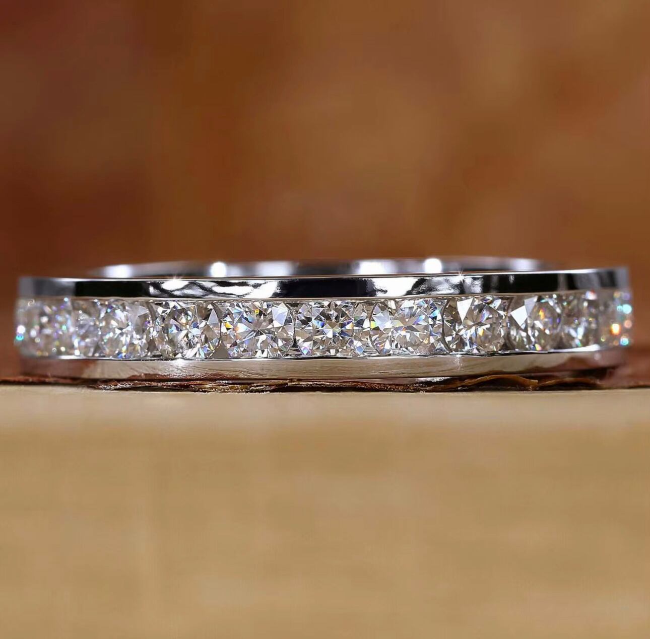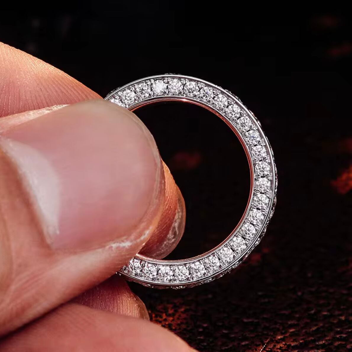 緻密に並べたスワロフスキーが途切れなく輝く、洗練のエタニティリング。シルバートーンの上品な光沢が指先を美しく引き立てます。オフィスでは知的で清楚な印象に、普段使いではさりげない高級感を演出。パーティーや記念日の装いには重ね着けで華やかな主役に。ジェンダーレスな美しさを備えた男女共用モデルです。