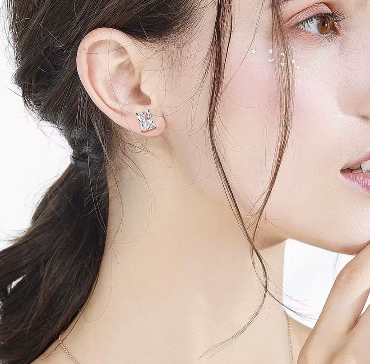 新品◆輝き保証 清楚 スクエア プリンセスカット ピアス キュービックジルコニア シルバー925◆保証書 ジュエリーポーチ メンズ レディース