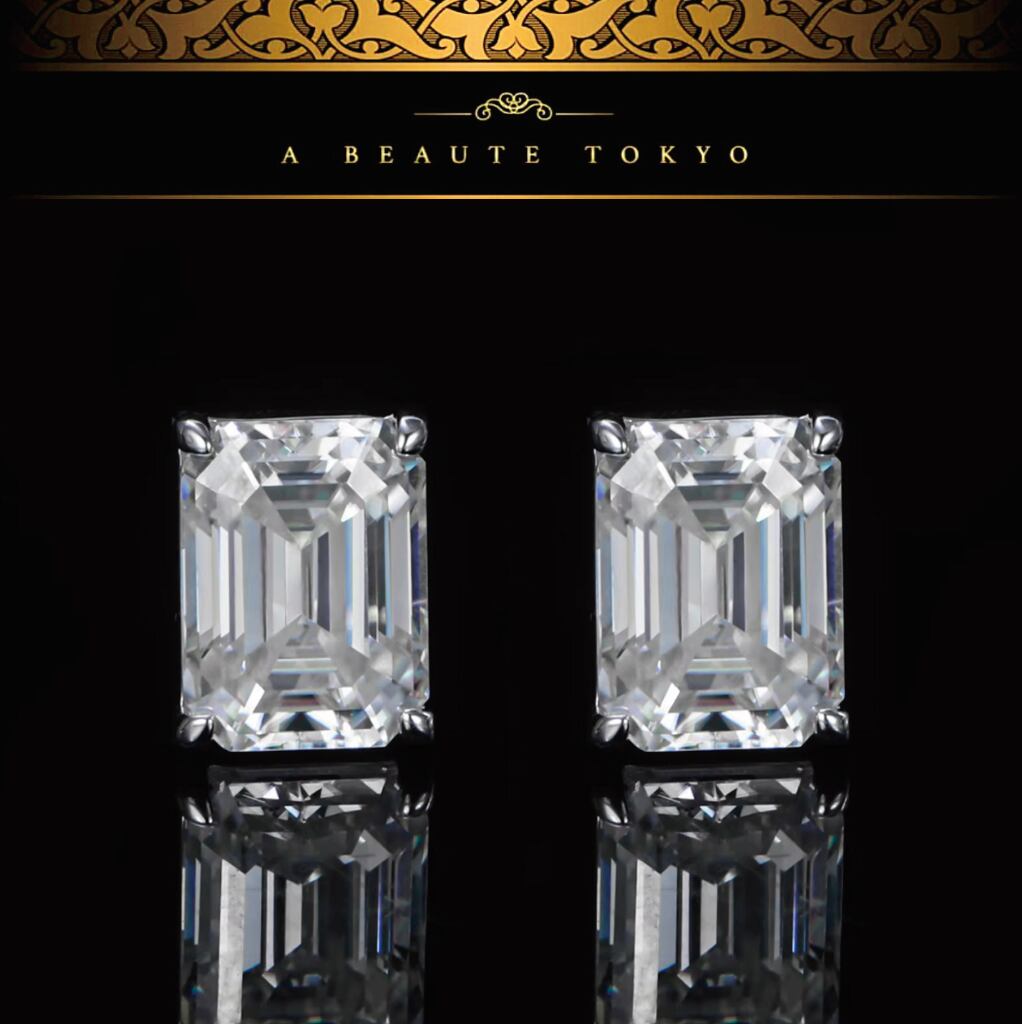 エメラルドカットのキュービックジルコニアが確かな存在感で、オフィスでは知的で洗練されたフェイスを演出。休日のきれいめカジュアルや、ディナー・パーティーでは凛とした輝きが装いをアップさせます。