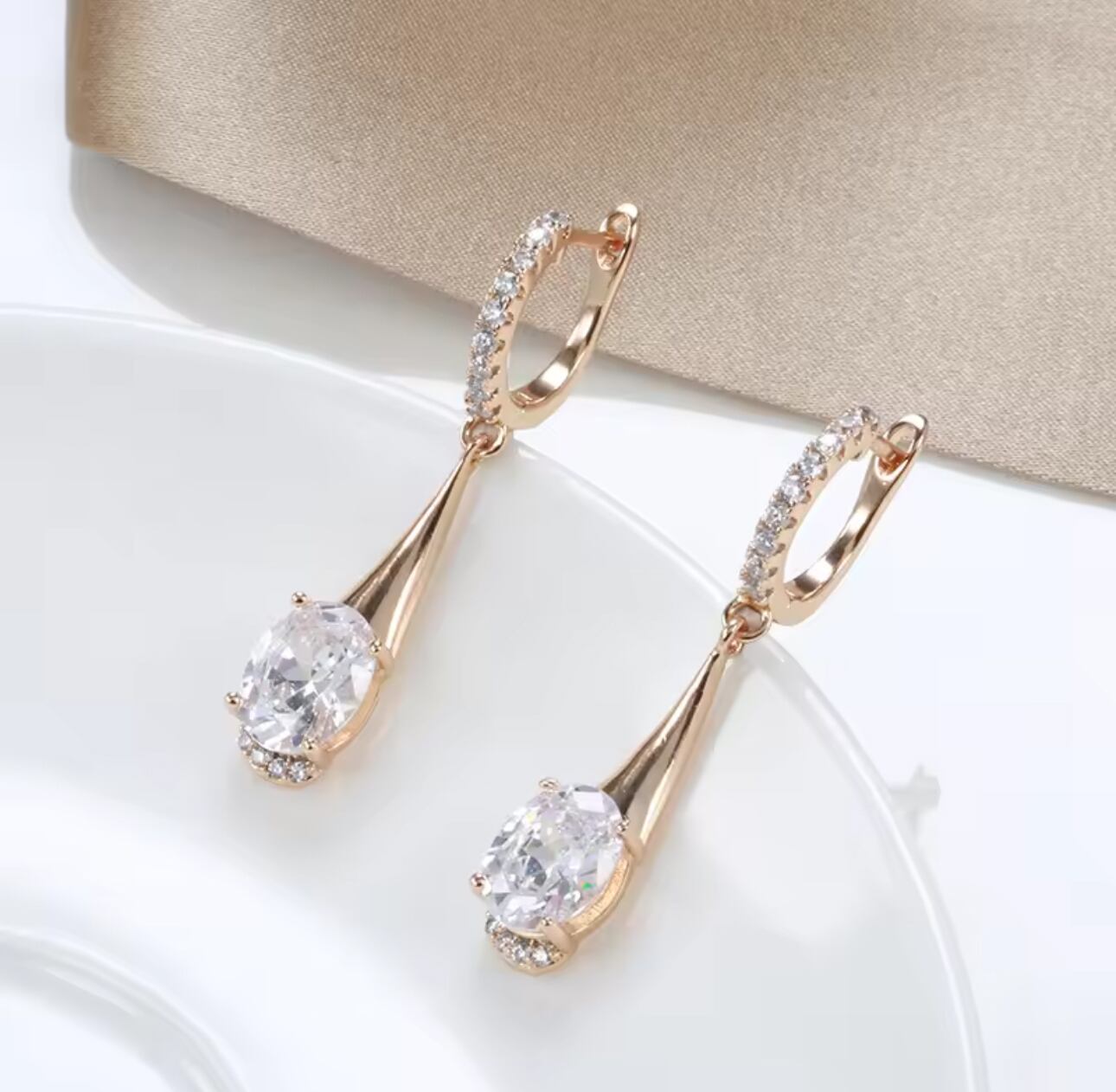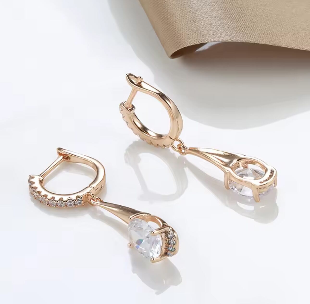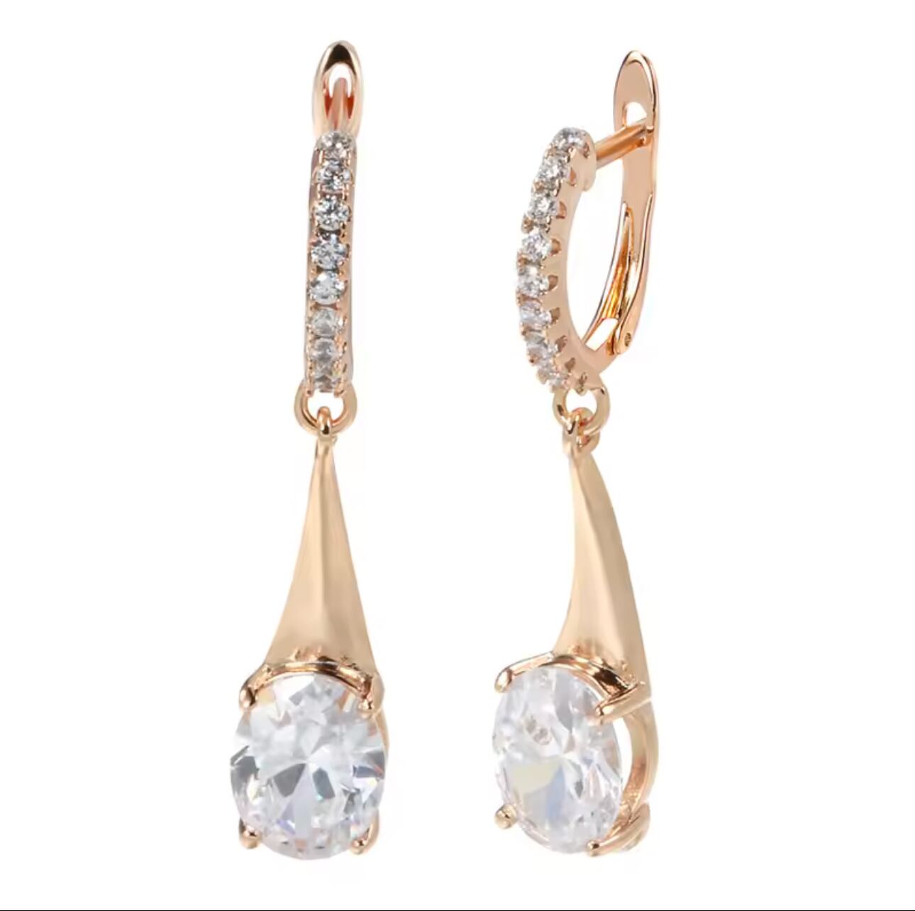 キュービックジルコニアの明るい煌めきが耳元で優雅に揺れ、横顔に美しさをもたらします。洗練されたオフィススタイルから、