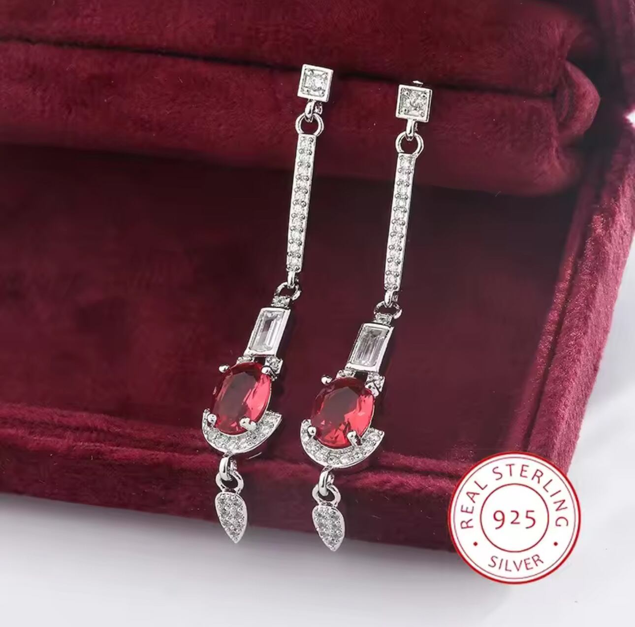新品◆輝き保証 スワロフスキー ルビー ロングピアス シルバー925◆保証書 ジュエリーポーチ メンズ レディース アレルギー対応 プレゼント