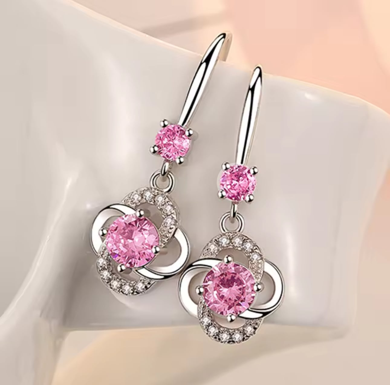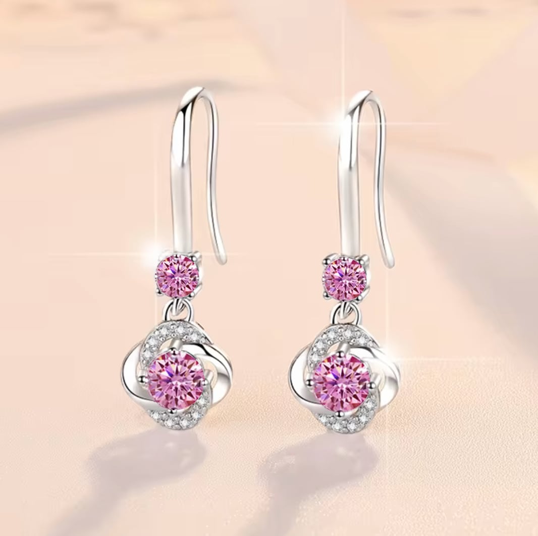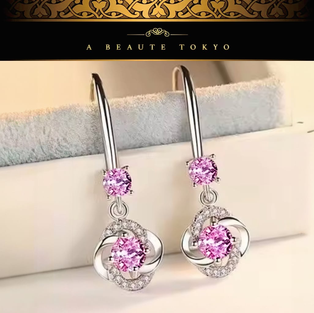 新品◆輝き保証 揺れる 可憐 フラワー フック ピアス SONAダイヤモンド シルバー925 ピンク◆保証書 ジュエリーポーチ アレルギー対応 純銀