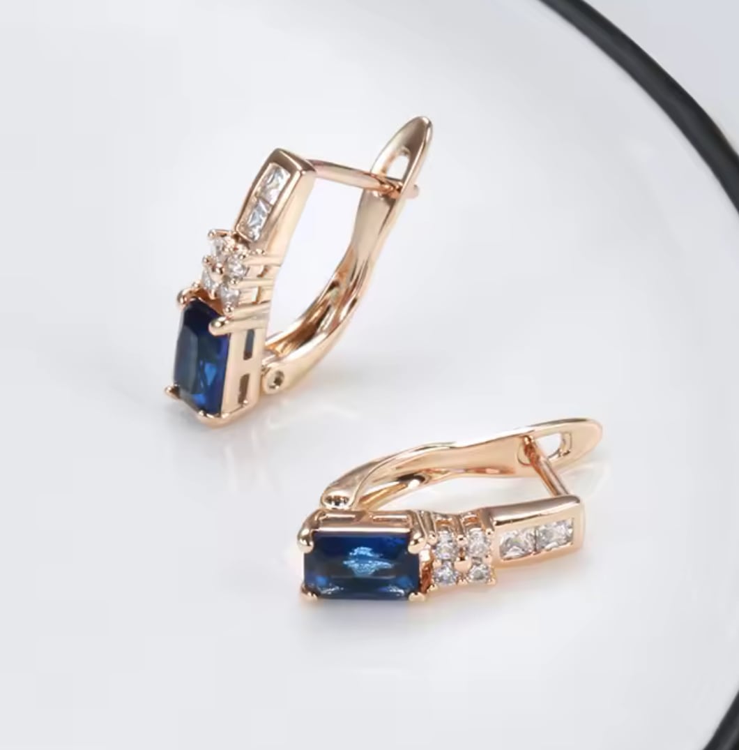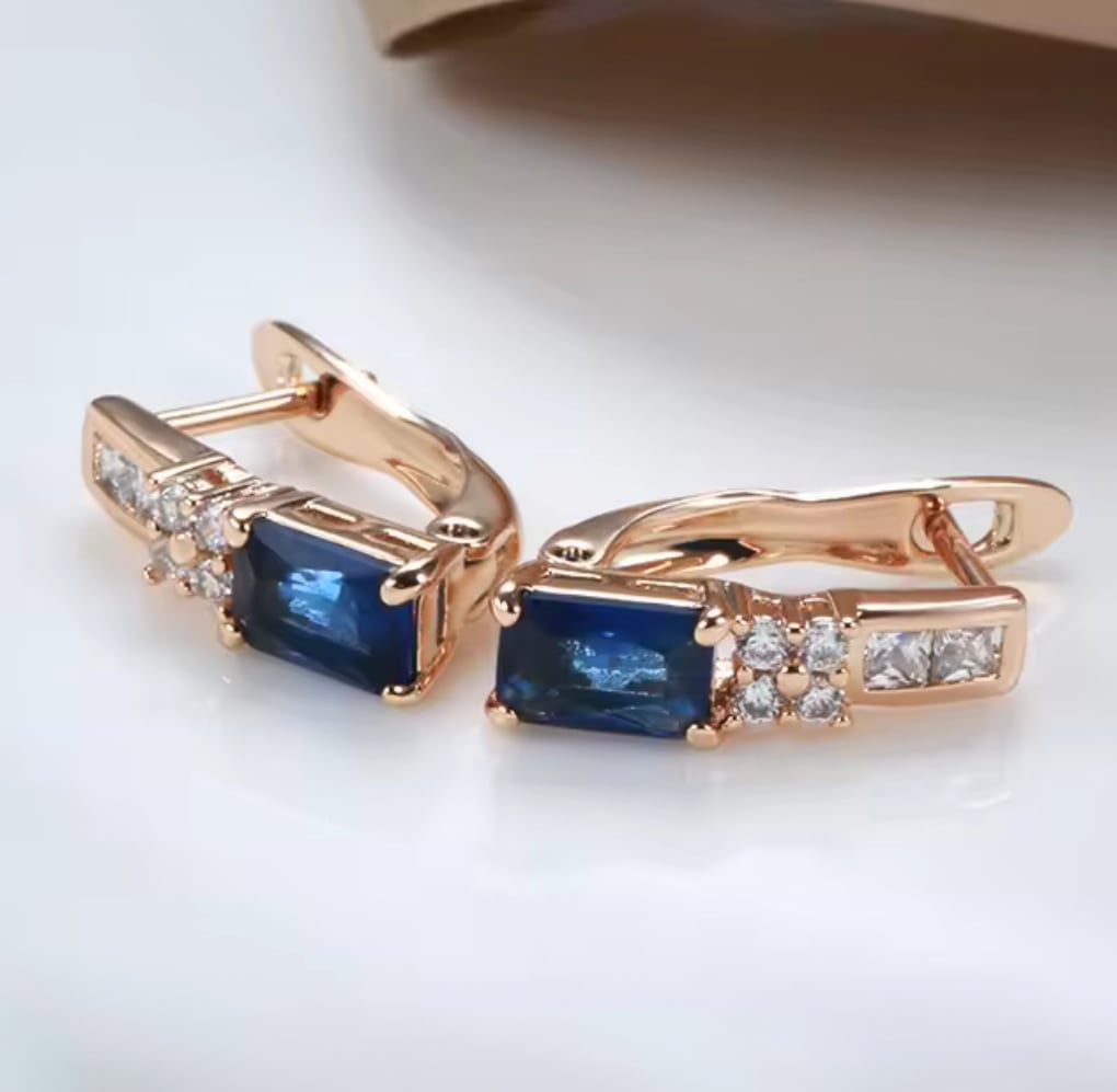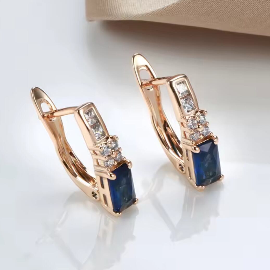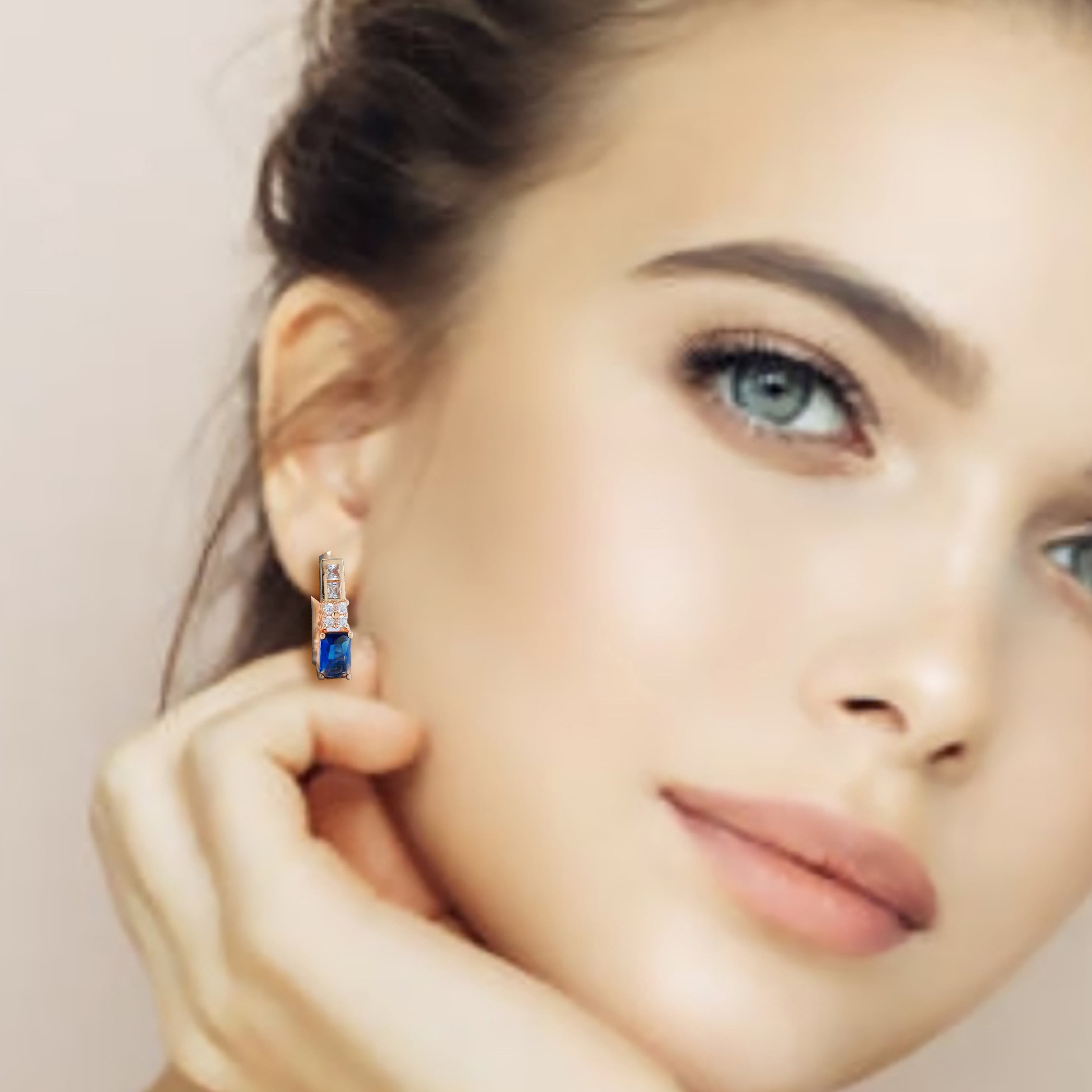 ゴールドの曲線に、深海を思わせるサファイアカラーのスワロフスキーが宿るフープピアス。静謐な青と温かみのある金のコントラストが、横顔に瑞々しい透明感と洗練された大人の余裕を授けます。