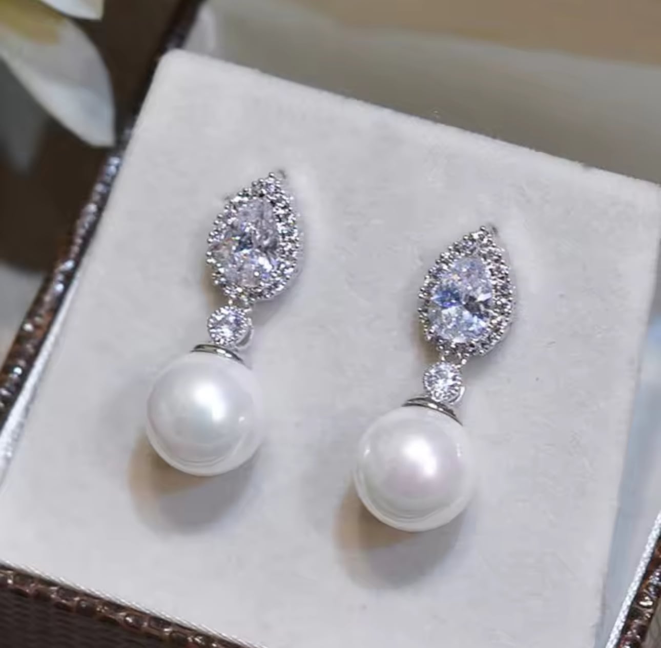スワロフスキーの清澄な輝きが横顔を優美に彩るピアスです。パーティーや会食には圧倒的な気品を添えて。日常の装いさえも特別に変えてしまう贅沢な煌めきを放ちます。