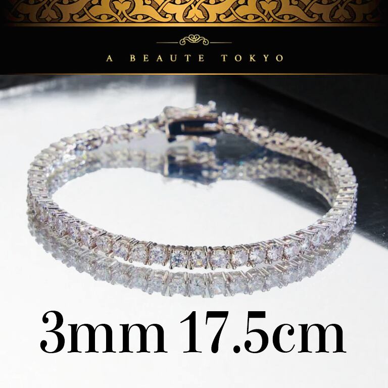 改良◆3mm 17.5cm SONA ダイヤモンド ブレスレット シルバー◆保証書 ジュエリーポーチ メンズ レディース