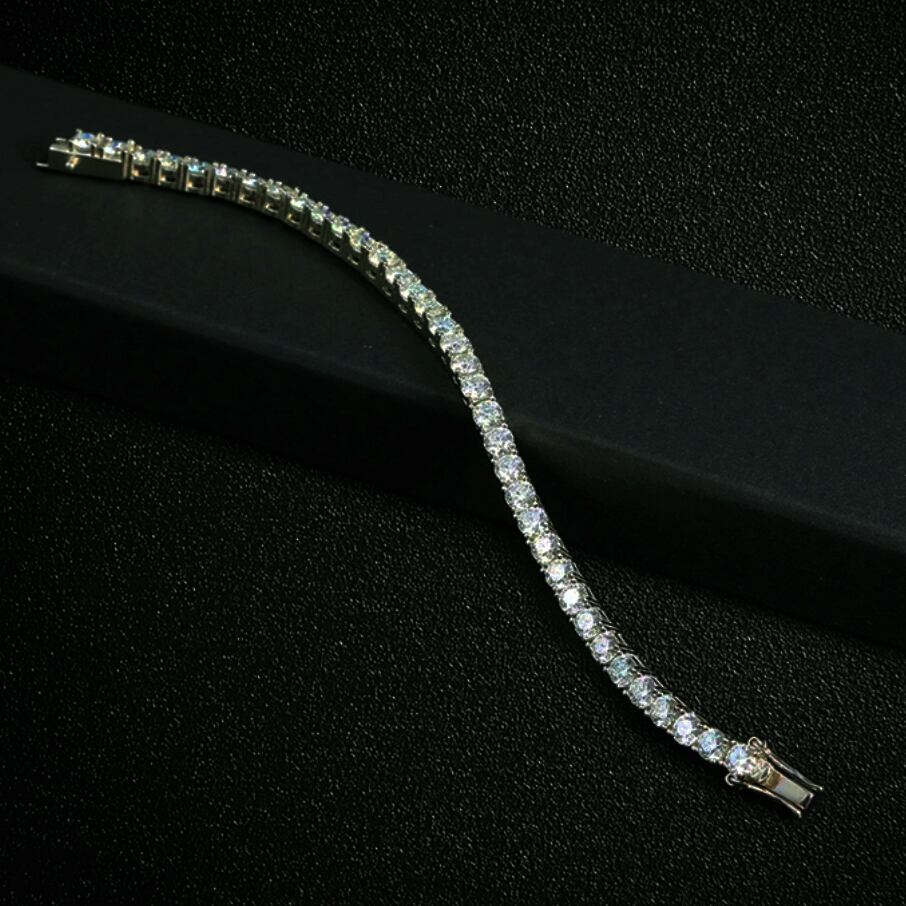 究極◆5mm 17.5cm モアサナイト ブレスレット シルバー◆silver925 保証書 ジュエリーポーチ メンズ レディース モアッサナイト プレゼント 純銀 プレゼント