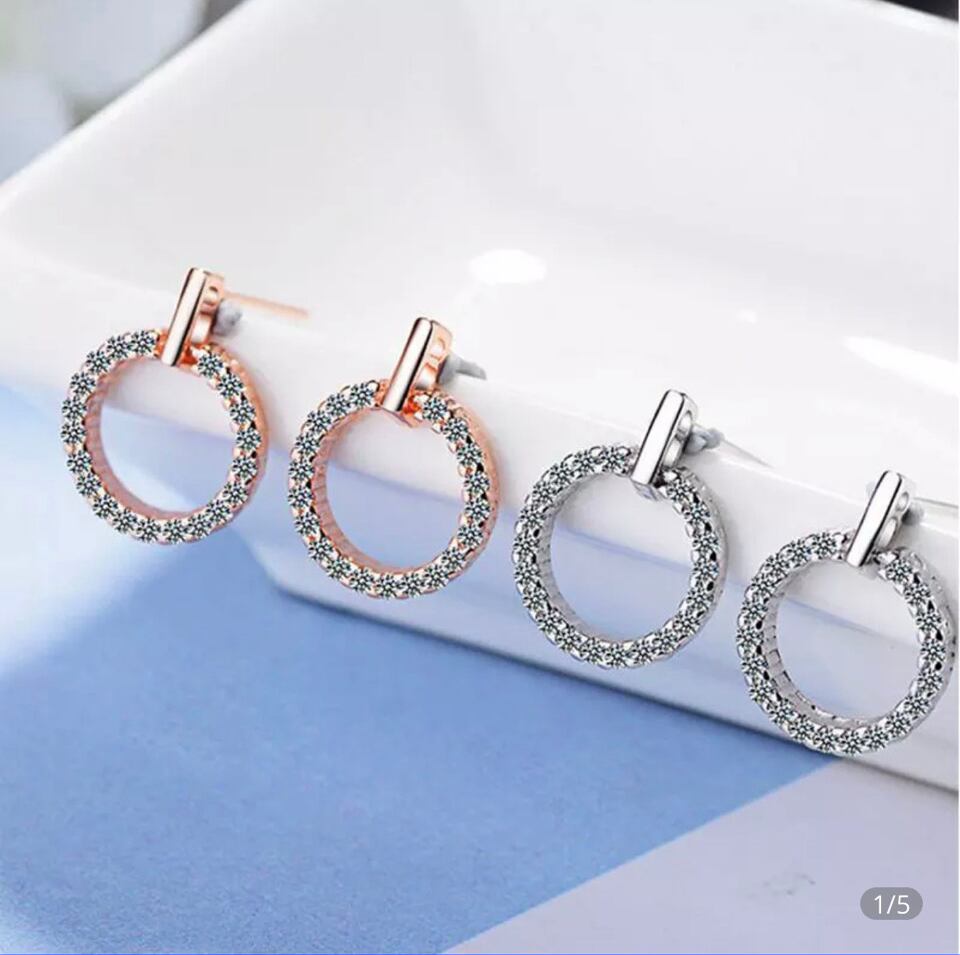 スワロフスキー クリスタルが全体に散りばめられた、サークルピアスです。