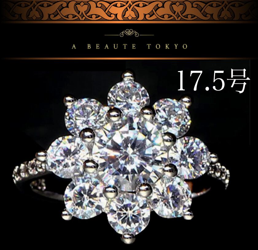 輝き保証◆17.5号 大ボリュームフラワー リング SONAダイヤモンド シルバー◆silver925 ジュエリーポーチ 保証書 レディース SONAダイヤ スターリングシルバー アレルギーフリー CZ ジルコニア