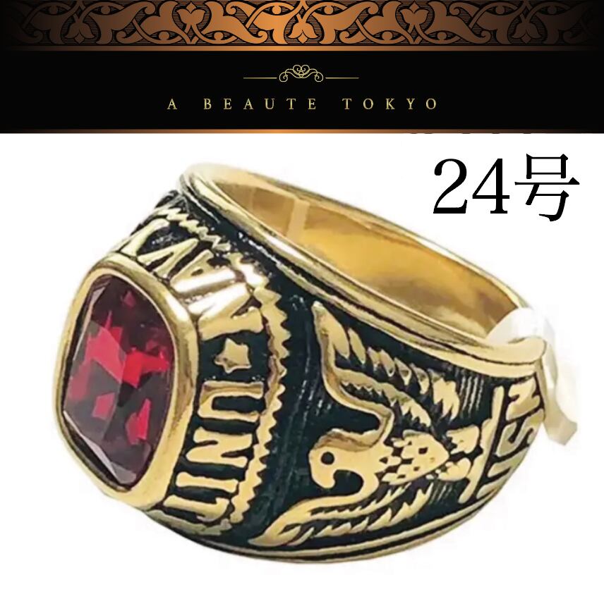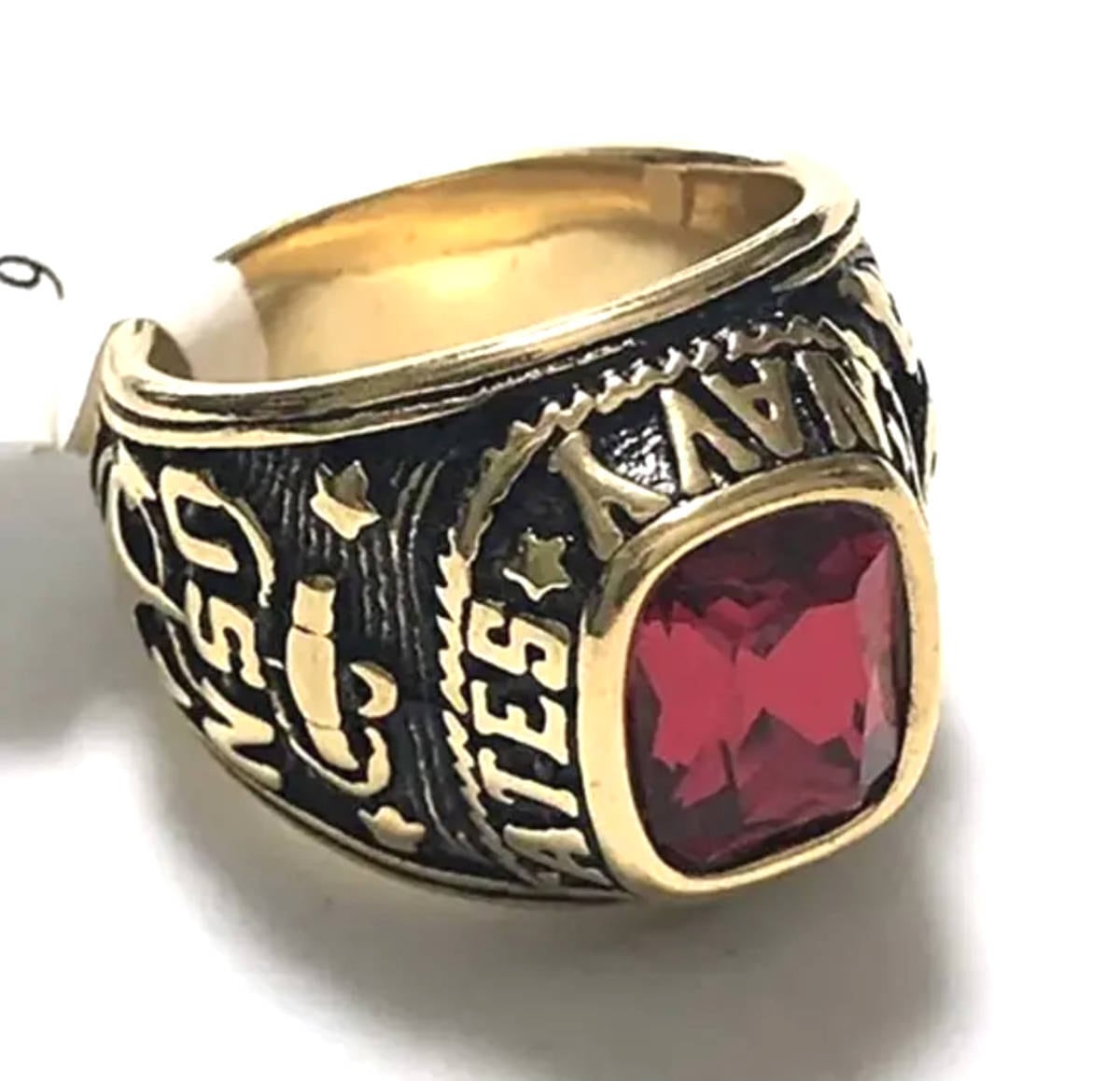 輝き保証◆24号 海軍 ミリタリーリング スワロフスキー ゴールド◆NAVY カレッジリング 指輪 ジュエリーポーチ 保証書 プレゼント メンズ アレルギーフリー ジェム