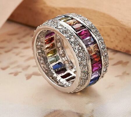輝き保証◆14号 カラフル リング SONAダイヤモンド シルバー◆S.ステンレス ジュエリーポーチ 保証書 レディース SONAダイヤ スターリングシルバー アレルギーフリー 指輪 CZカラーダイヤ ジルコニア マルチ