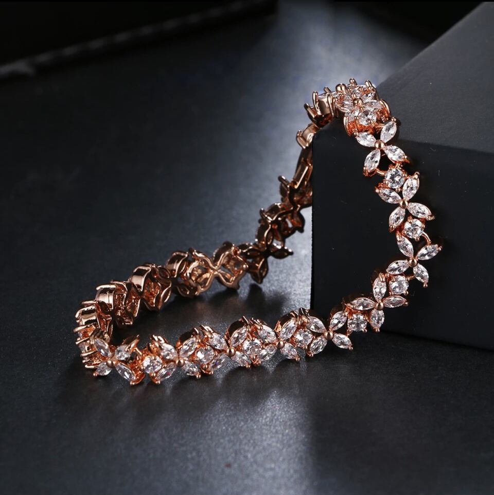 アヴューテSONAダイヤモンドを全面に使用した、豪華なフラワーテニスブレスレットです。角度を変えるたびキラキラと7色に眩く輝きます。