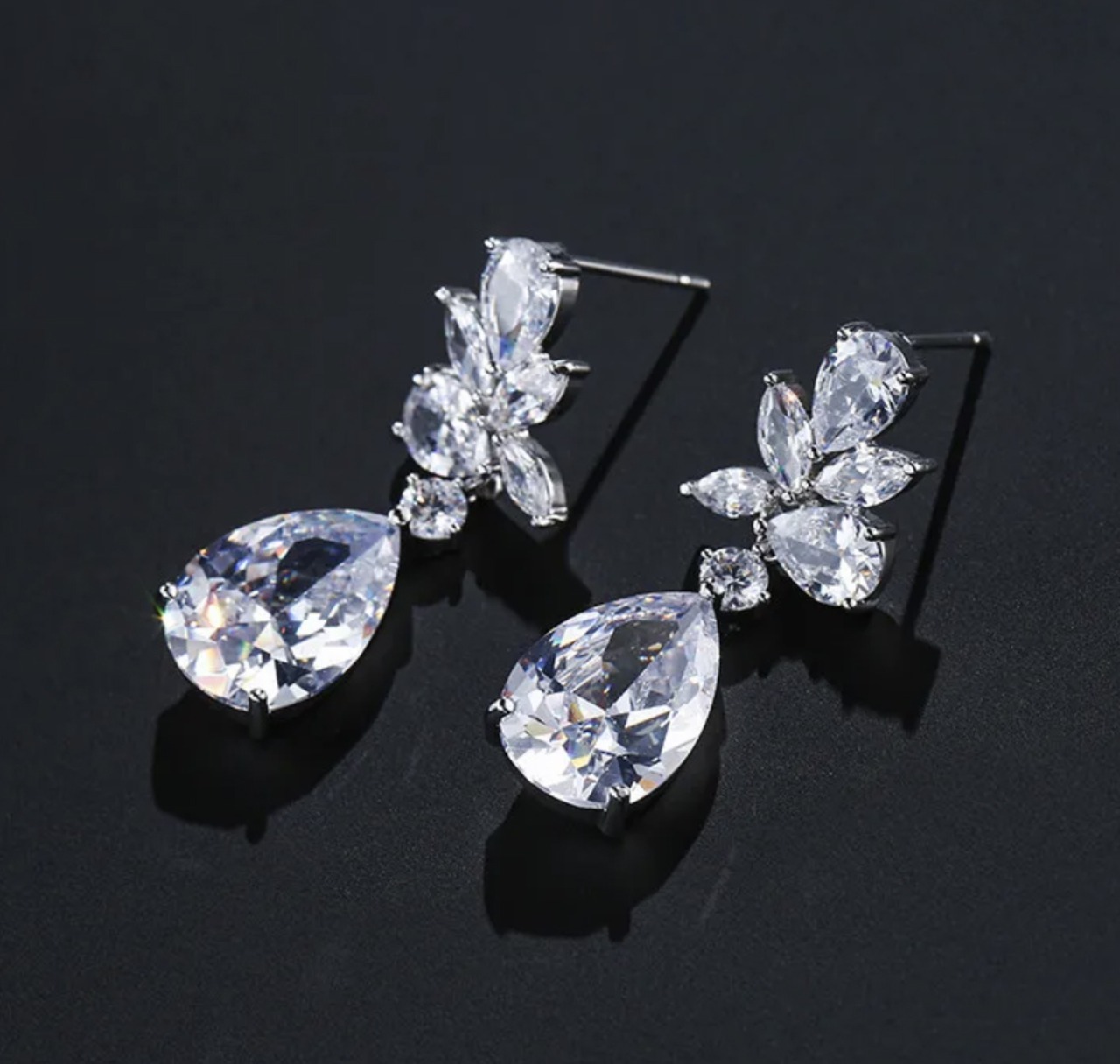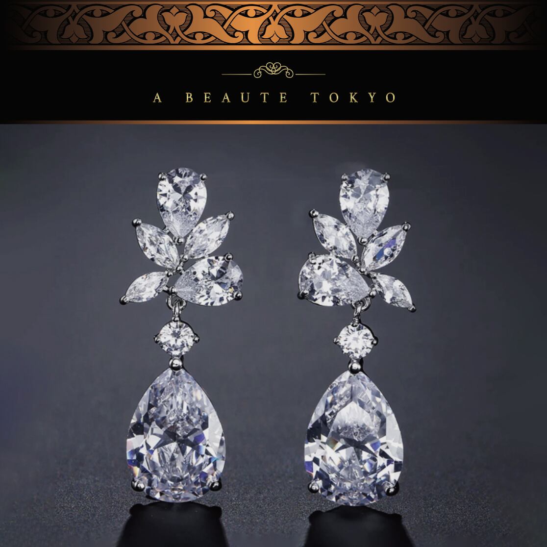 アヴューテ ダイヤモンド(SONAダイヤ)を大胆に使用した、ゴージャスなドロップピアスです。角度を変えるたびキラキラと眩く輝きます。