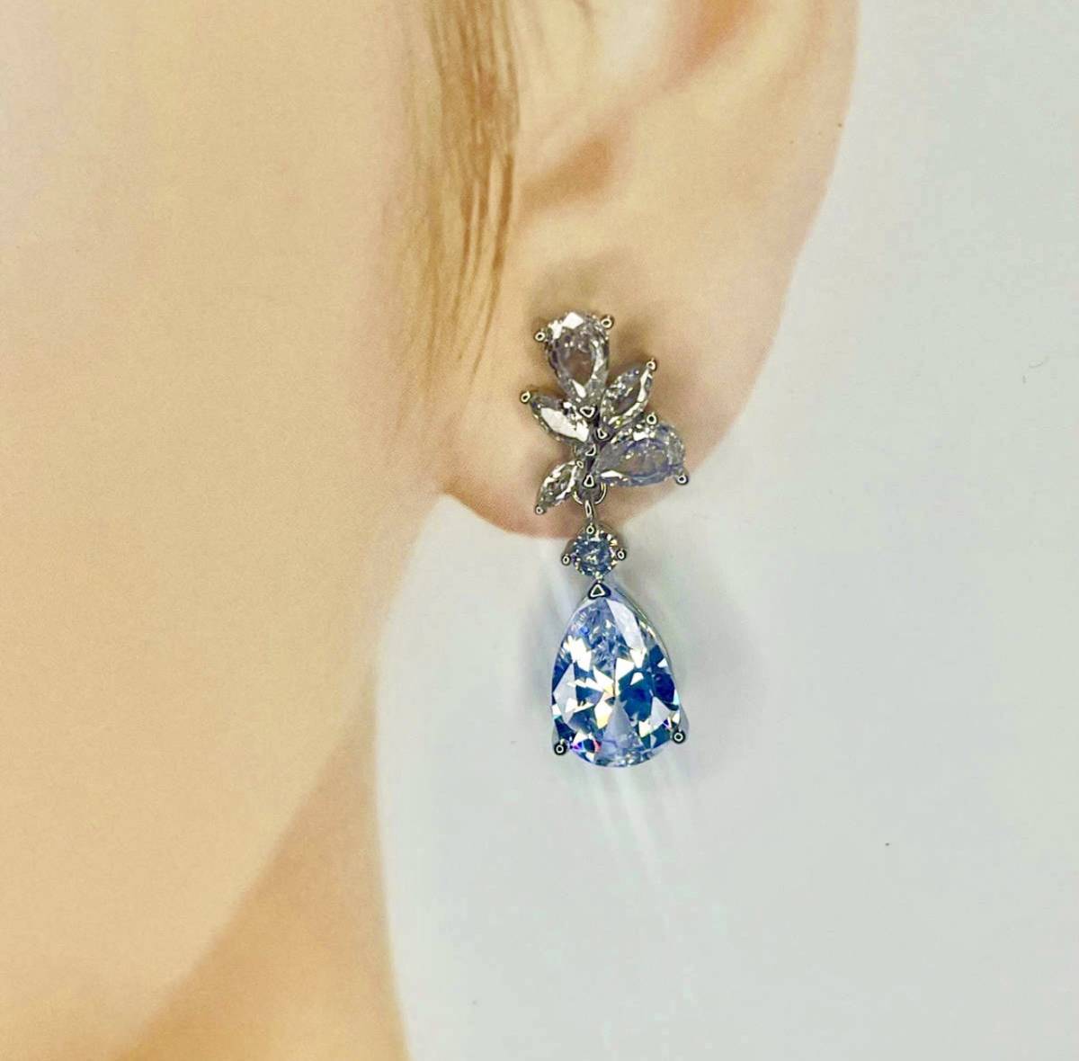 輝き保証◆SONAダイヤモンド 豪華 ドロップ ピアス シルバー◆silver925 ジュエリーポーチ 保証書 レディース SONAダイヤ スターリングシルバー アレルギーフリー