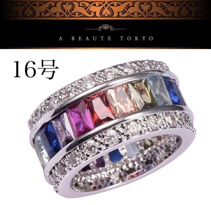 輝き保証◆16号 カラフル リング SONAダイヤモンド シルバー◆silver925 ジュエリーポーチ 保証書 指輪 レディース アレルギーフリー CZ カラーダイヤ ジルコニア マルチ