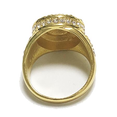 高級◆22号 大ぶり サークル スワロフスキー リング ゴールド◆ジュエリーポーチ 保証書 指輪 メンズ レディース クリスタル アレルギー対応 クリスタル