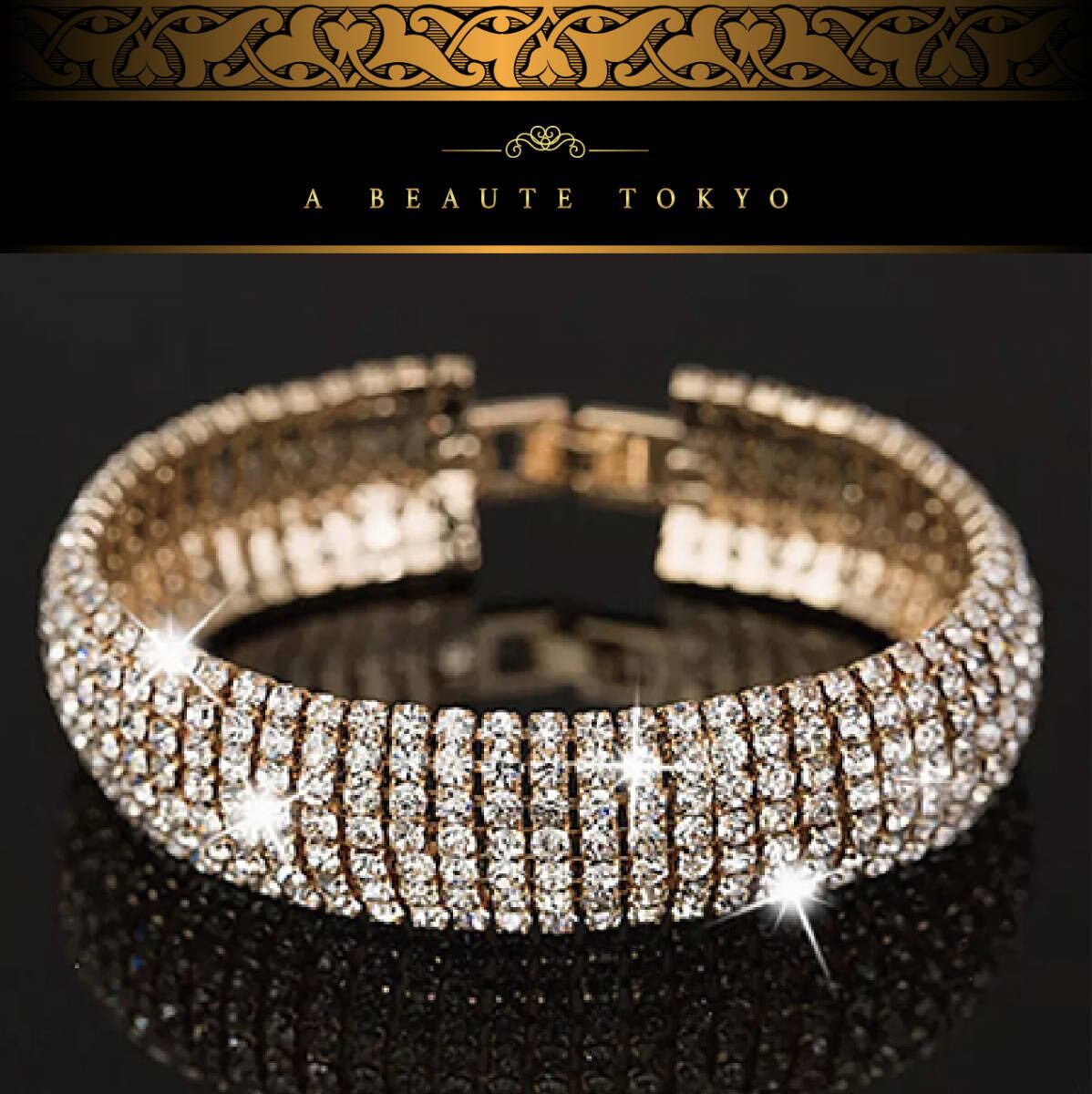 輝き保証◆パヴェ スワロフスキー ブレスレット ゴールド◆silver925 ジュエリーポーチ 保証書 クリスタル 腕輪 レディース アレルギーフリー