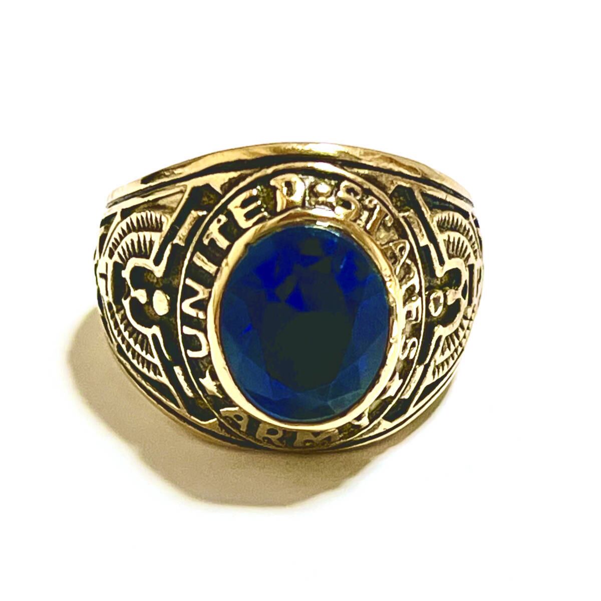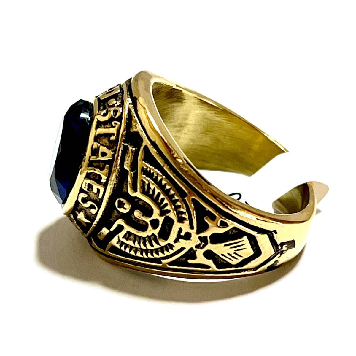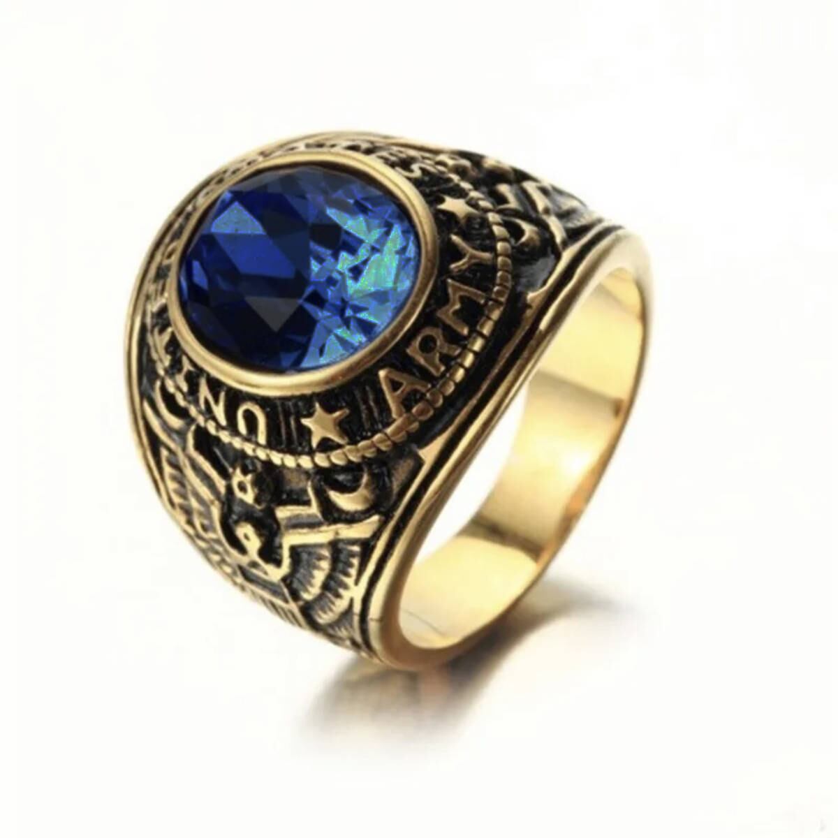 高品質◆21号 スワロフスキー 米陸軍 ミリタリーリング ゴールド◆ARMY カレッジリング 指輪 ジュエリーポーチ 保証書 メンズ サファイア