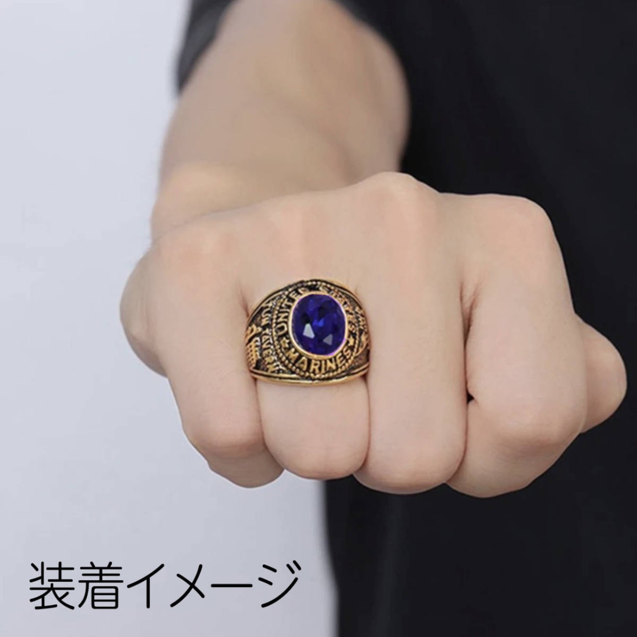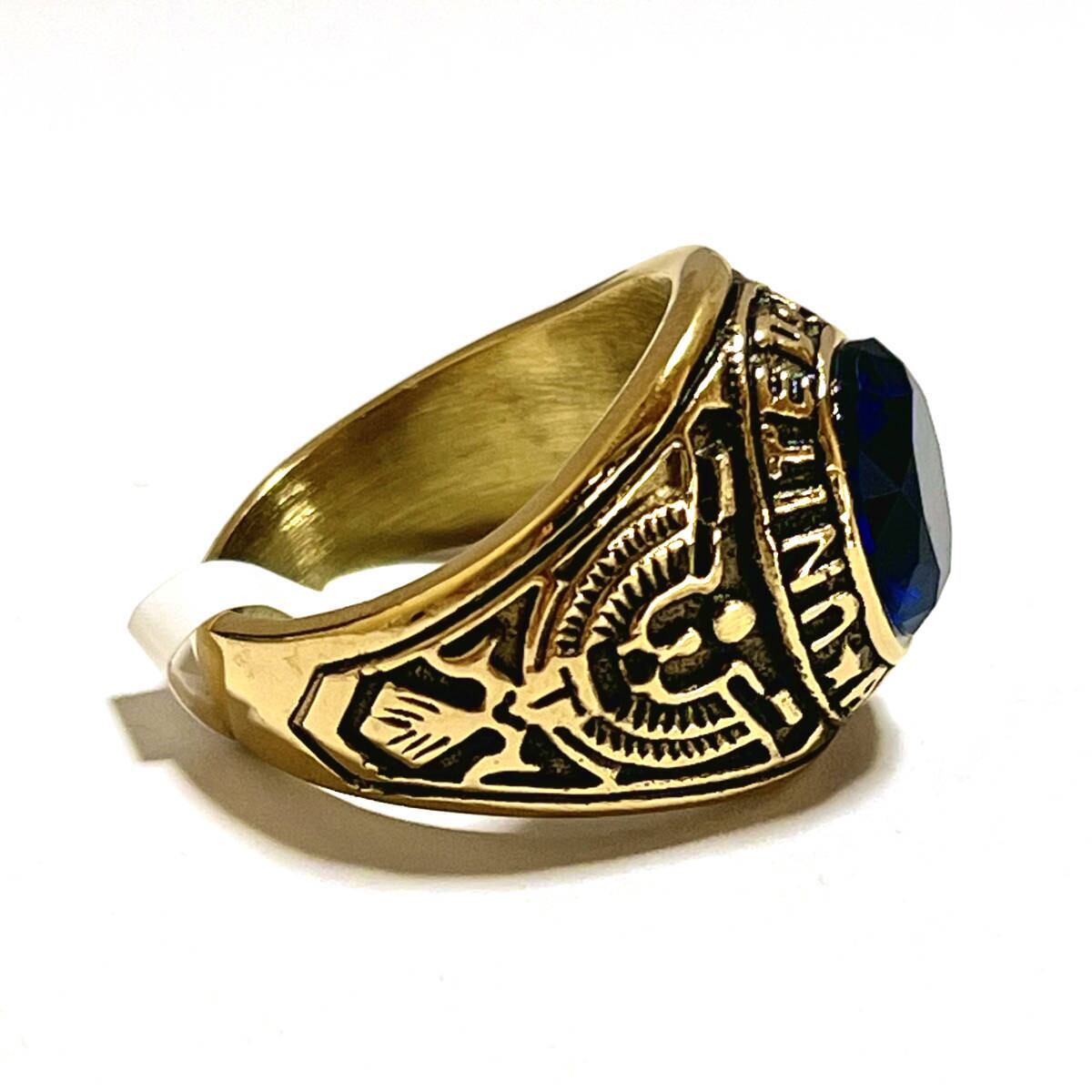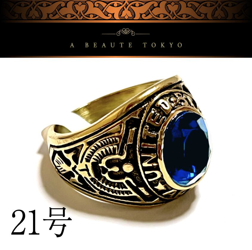 高品質◆21号 スワロフスキー 米陸軍 ミリタリーリング ゴールド◆ARMY カレッジリング 指輪 ジュエリーポーチ 保証書 メンズ サファイア