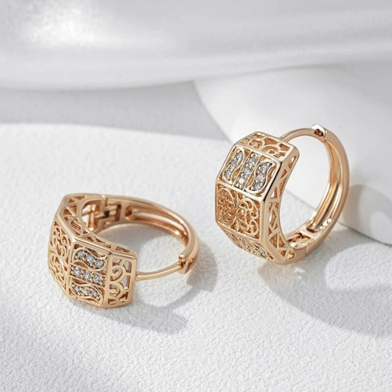 ところどころに配置されたスワロフスキークリスタルが目を引くフープピアスです。